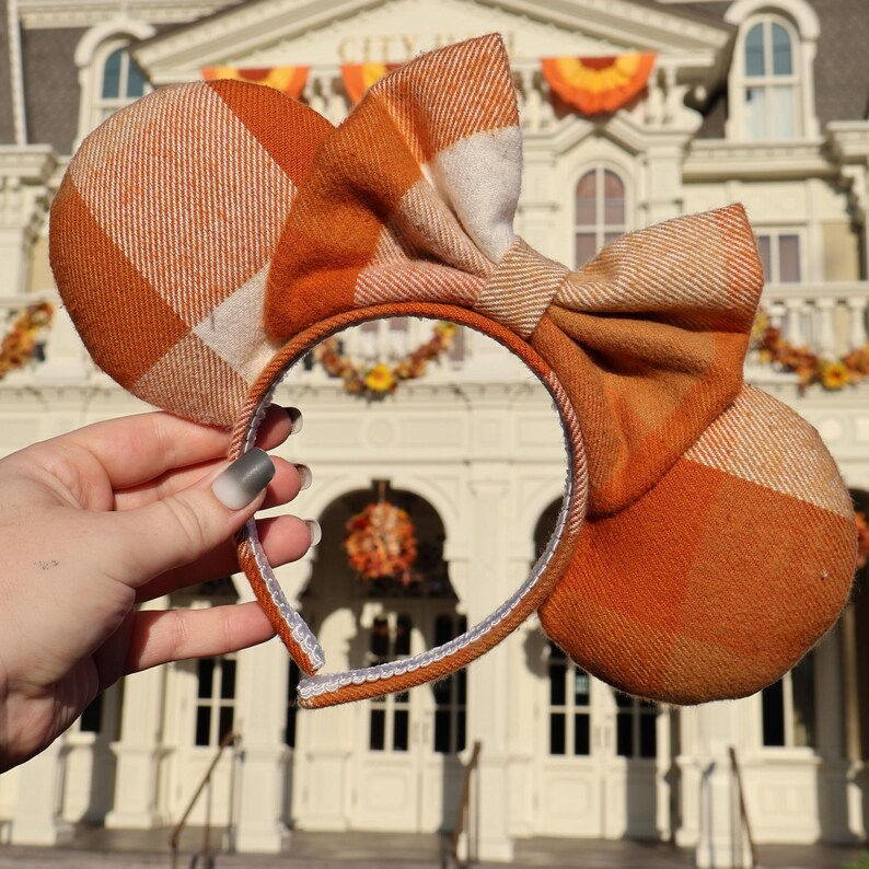 Orange and White Plaid Minnie Mouse Ears for Fall/Autumn | Halloween Minnie Ears