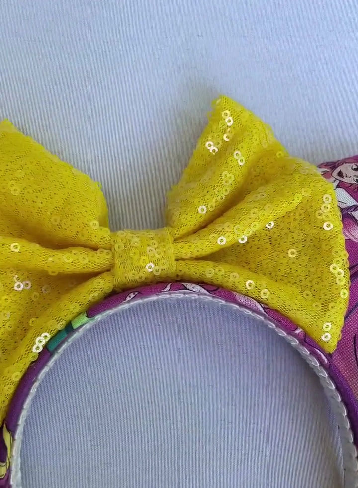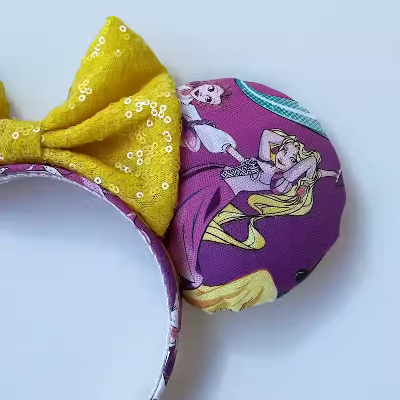 These purple Minnie mouse ears feature Rapunzel and are perfect for a day in Magic Kingdom. The ear headband is lined with braided trim to ensure maximum comfort without any slipping.